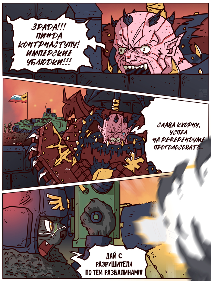 Запись извлечена из останков вокс-логгера, найденного в груде тел на уровне Святилища -147. Источник идентифицирован как раб-носильщик G-774. Тело подвергнуто кремации в тот же день. Инцидент зарегистрирован как "массовая галлюцинация на почве кислородного голодания". Золотой Трон стабилен. Астрономикон горит. Император... Император спит. Должен спать.