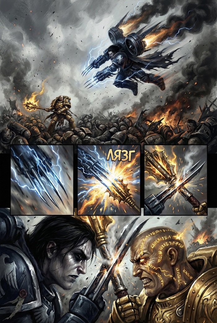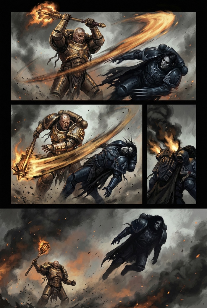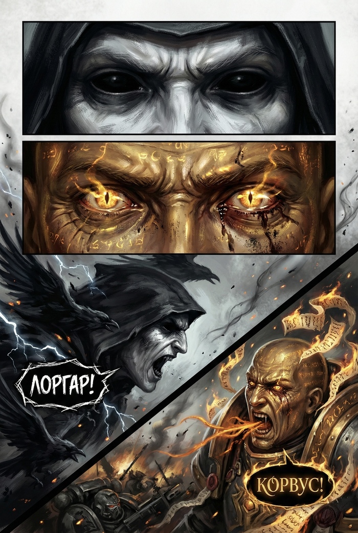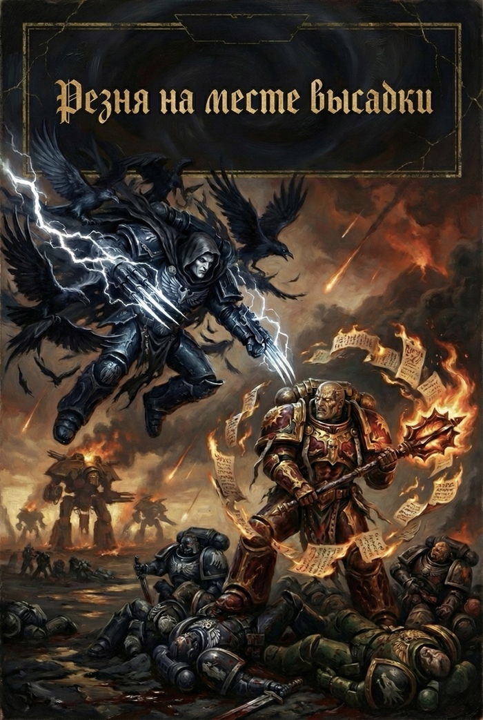 Лоргар против Корвуса. Вихрь крови и ярости на месте высадки. Один ищет контроль, другой — месть. Кто выйдет победителем, когда каждый удар решает судьбу?