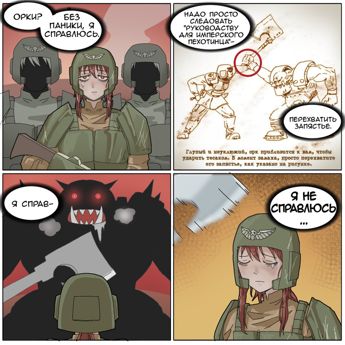 Довольно неплохая книга. В начале тау и космодесант смотрят друг на друга как на говно, но в процессе войны начинают уже осторожнее друг на друга смотреть.