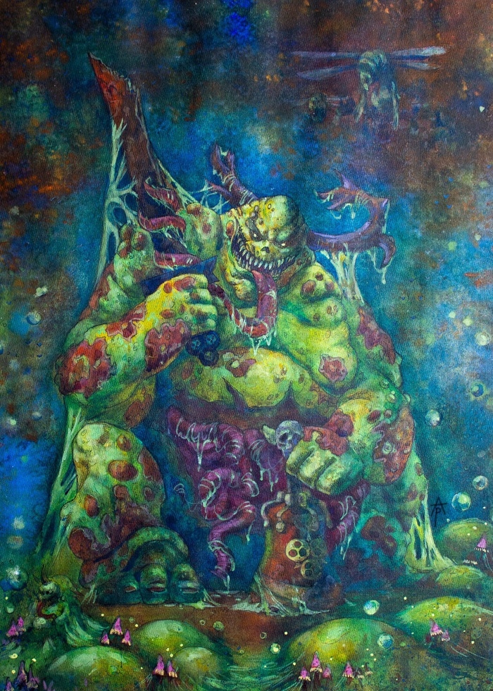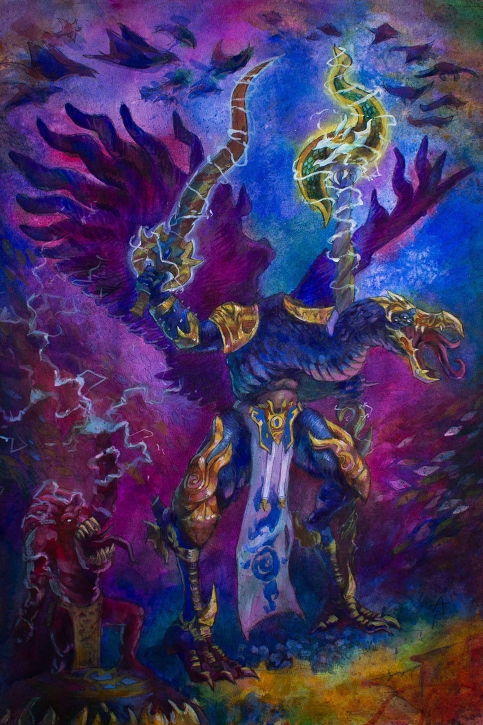 Выполнила заказ по Warhammer Fantasy Battles с вампирами, нежитью и наемниками в главной роли. Интересная задумка с рамкой, как в книжных иллюстрациях. Я наслаждалась всем процессом.Материал: акварель, гуашь, акрил, формат А2, высококачественная акварельная бумага.