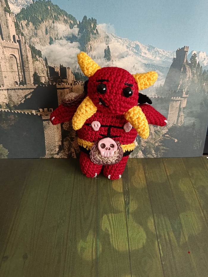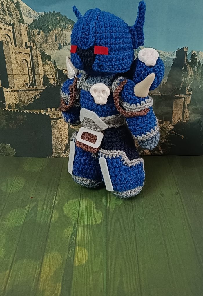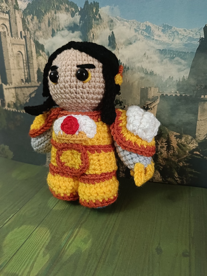 Черной нитью в 14 ряду за оставленные передние полупетли провязываем 24 сбн, замыкаем кольцо сс, нить обрезаем и убираем.