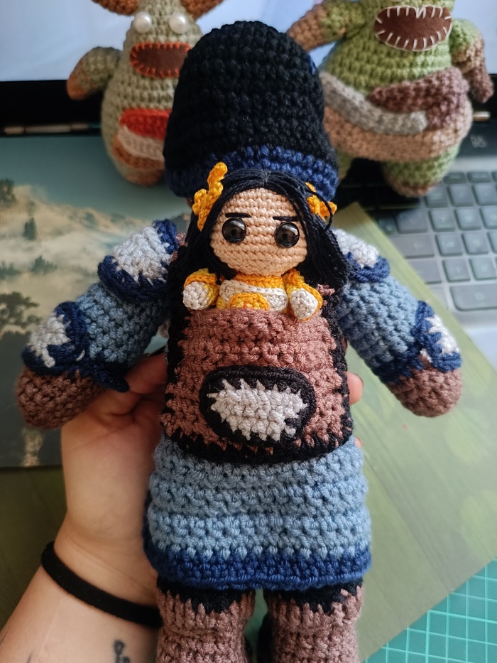Нитку конца вязания вывести наружу в 21 ряд и за передние полупетли 20 ряда провязать 18 сбн, сомкнуть кольцо сс, нить обрезать и убрать.