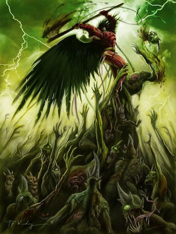 Многие, впрочем, считают, что Хорус просто приревновал папочку к остальным братьям. Причем приревновал настолько, что когда Эреб нанял Черного Парию (антипсайкера такой мощи, что не почесавшись мог грохнуть даже Импи — был бы образчик крови), Хорус таки надрал капеллану жопу: убить папу хотел только сам лично. Так или иначе, использовав свой хорошо подвешенный язык, хорошо разогнанный мозг и хорошо развитый скилл троллинга, Хорус переманил на свою сторону половину примархов и прилагающиеся к ним армии, провел зачистку в легионах, после чего пошел отвоевывать у папочки трон. Сия подлинно былинная война дошла до своей развязки на Земле Терре, где Император и Хорус подрались лично, после чего Хорус умер, а Император — чуть менее чем полностью откинул копыта. Справедливости ради стоит отметить, что в драке участвовал также Сангвиний, который к приходу Императора успел скоропостижно скончаться, чем крайне огорчил Большого Папу и весь свой легион, хотя и успел изрядно поцарапать и измотать Хоруса, чем, по мнению многих, спас Самому жизнь.