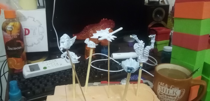 Ииии поставив на шпашки и палочки (благо есть технические отверстия и места крепления шарниров), загрунтовал их акриловым художественным грунтом, так как в аэрозоле закончился( как оказалось)