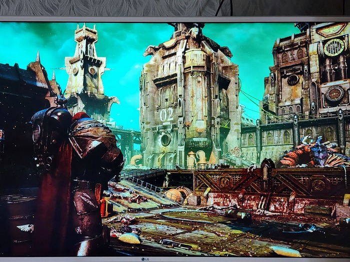 Но, главная проблема в другом - это скучное окружение. Warhammer 40000 - это про гримдарк, монструозность и пафосность во всём. Однако, в игре мы сражаемся лишь на каких-то обычных заводах, площадках и переплетениях городов. Окружение довольно пустое и стерильное, мало что говорит о принадлежности к вахе. Конечно, есть моменты, вроде "поездки" верхом на Титане или выстрела из психического оружия...но большую часть времени мы проводим в весьма скучном окружении, что для данной вселенной фатально.