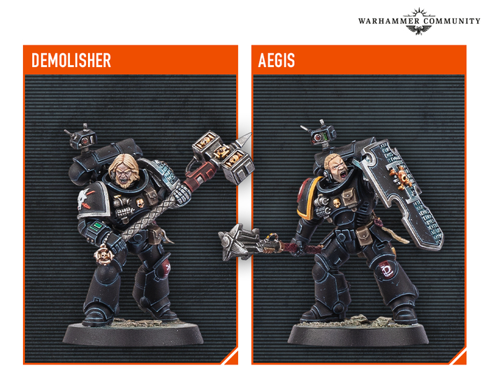 Второй космодесантник может быть собран как "Разрушитель" с двуручным громовым молотом или, если повесить силовую булаву и щит, он станет Аэгисом.