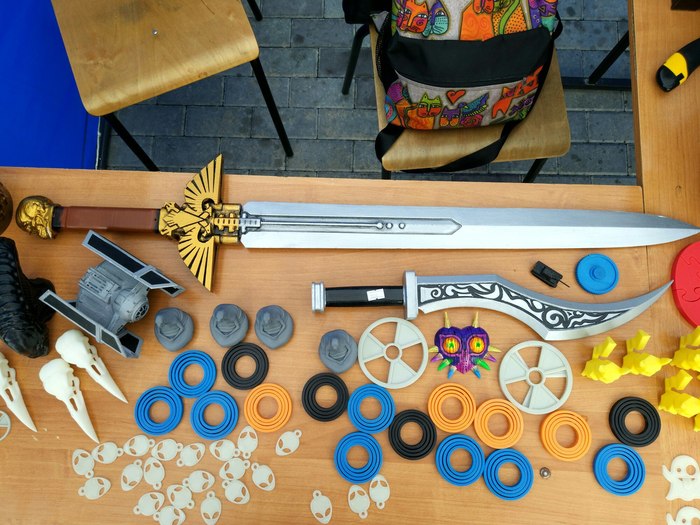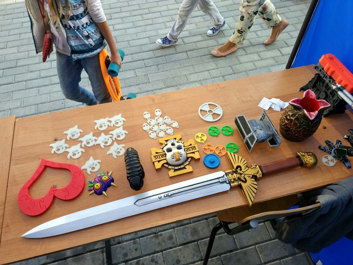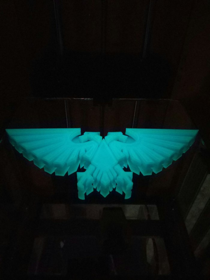Бонусом фотография светящейся в темноте аквилы, меча инквизитора, фотки с мероприятия НГУ, где выставляли на продажу все напечатаные штуки, фотографии изготовления терминаторского крукса. Высота титана - 27см, размер крукса - 15см, аквилы - 18см. Некоторые другие фотки можно найти в группе https://vk.com/3d_magic_print =)