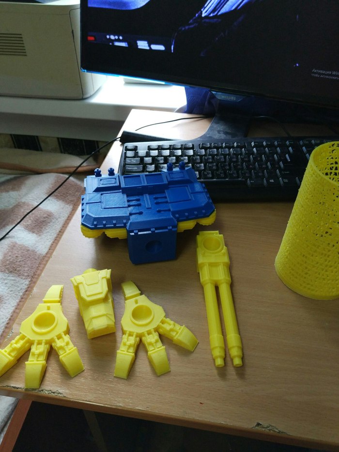 Титана печатал несколько дней из ПЛА пластика, модель нашел на просторах интернета. Все как всегда - печать, клеил связкой суперклей+пищевая сода, сверху грунт, затем краска+лак. Красила титана моя мадам 3-4 дня, уже точно не помню сколько времени заняла работа (почти полгода прошло). Как всегда, выкладываю фото процесса изготовления) Только на этот раз не фотал робота в грунте.