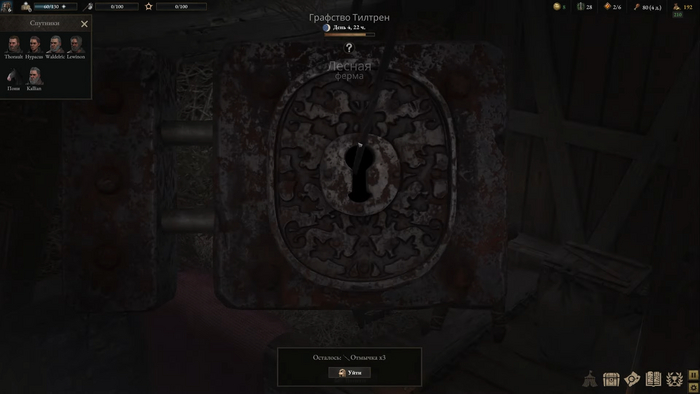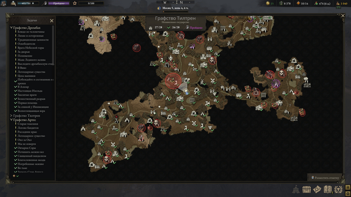 6. Графство Дромбах. Свежий, новый и очень тяжелый регион. Даже читая информацию в игре, я совершенно оказался не готов к тому, что там ждет. Помимо обычной стражи там так же бегают отряды Инквизиции, которые задают вопросы про местного бога и пытаются сжечь кого-нибудь из вашего отряда, если отвечаете на два вопроса неправильно.