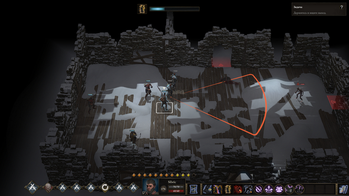 Шуметь не критично, но начинается побег из уничтожающегося здания. Герои вместо основного действия могут "искать выход". Важный момент про этот навык- с каждым применением за раунд он теряет свою эффективность, поэтому лучше оставить 1-2 персонажей на поиск выхода, а остальными зачищать комнату.