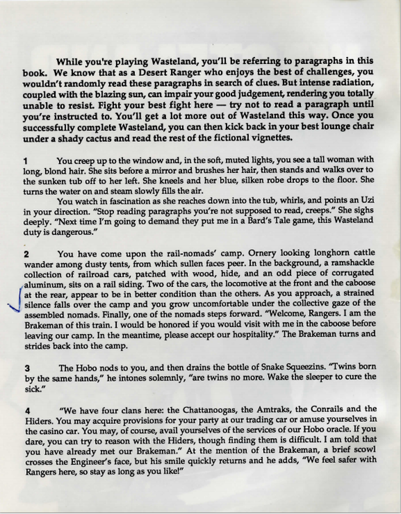 Внимание! Текст, приведённый ниже, полностью раскрывает сюжет игры Wasteland. Если вдруг вы собирались на днях поиграть в неё - немедленно прекращайте читать и отправляйтесь играть :-)