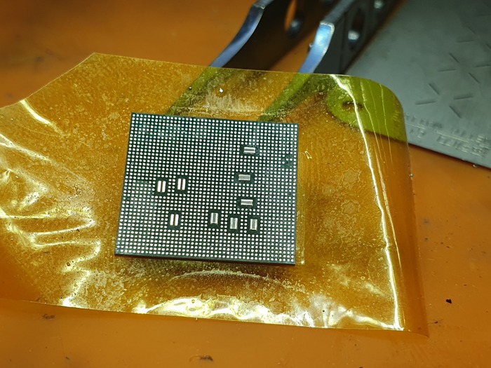 Третье: При снятии процессора из под низа происходит равномерное плавление припоя под ним - снимается легко, его не ведёт при снятии и меньше шансов убить кристалл внутри, ибо процессор без чипа памяти тоже мусор и наоборот.