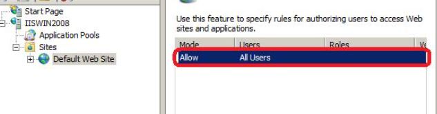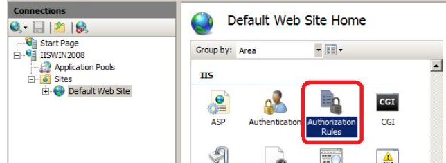 8. Вернитесь на уровень сайта Default Web Site и выберите Authorization Rules (либо .Net Authorization Rules)