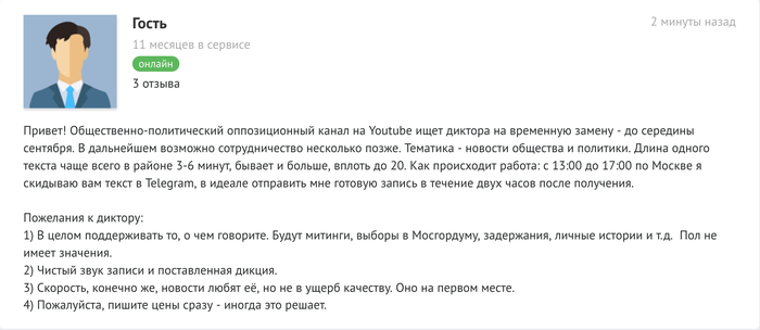 Оговорюсь с сходу что я там тоже зафейлился и меня это не красит, но этот человек оставил мне гневный отзыв и обвинил что я его кинул. Минусите...