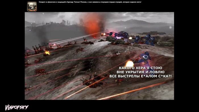 Можно заметить, как Капеллан благодарит меня за помощь, в то время, как моё войско даже не находится рядом, а его окружили хаоситы. Саркастичный Капеллан - это что-то новенькое!