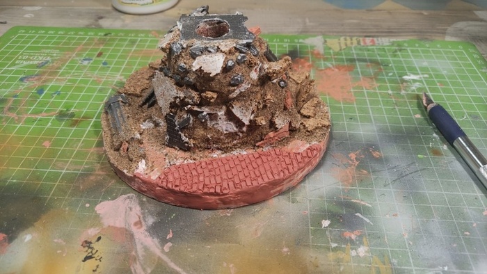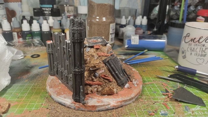Слой за слоем, я смог сформировать аутентичную для поля боя Warhammer подставку, да и для диорамы вышло недурно
