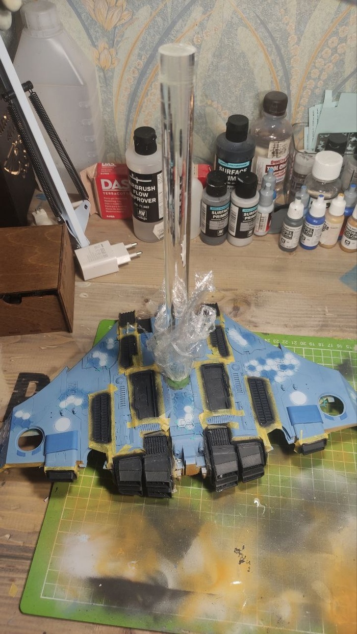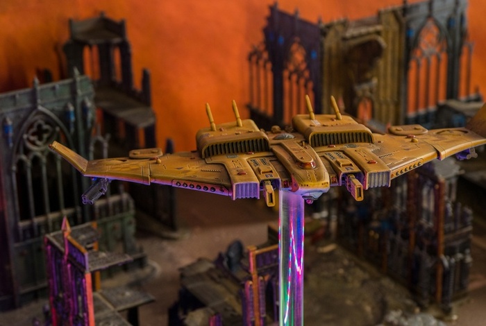 3) Низкая посадка относительно стола. Стандартная акриловая подставка для летающих моделей, поднимала эту махину всего на 10 сантиметров над столом, что делает просто невозможным её использование даже в стандартных руинах от GW
