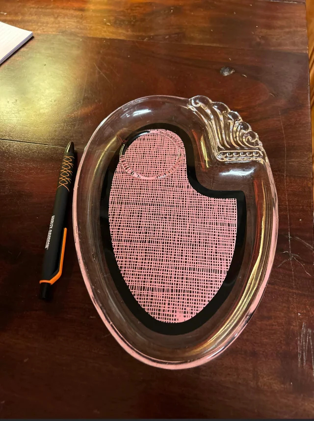 5.Кто-нибудь знает, для чего использовалась эта овальная стеклянная тарелка? В левом верхнем углу у неё выпуклый круг.