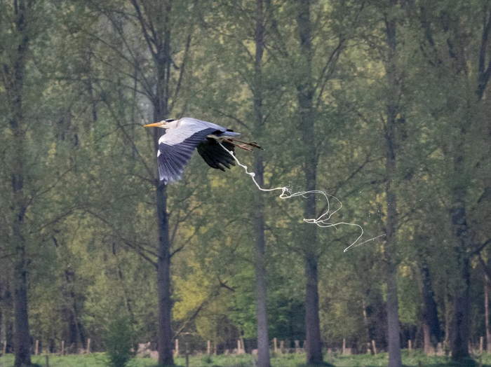 Да нет, просто пролетала большая голубая цапля. Среди всех птиц они славятся тем, что очень много гадят. Голуби вообще грустно в углу рыдают, глядя на нее. А птица красивая.