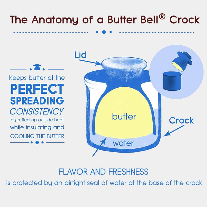 Это французская масленка, позволяющая хранить масло при комнатной температуре. Масло кладется в стакан, переворачивается и кладется в большой стакан, куда потом наливается вода. Доступа воздуха к маслу нет, вода есть - масло долго хранится, только воду раз в дня 2 нужно менять.