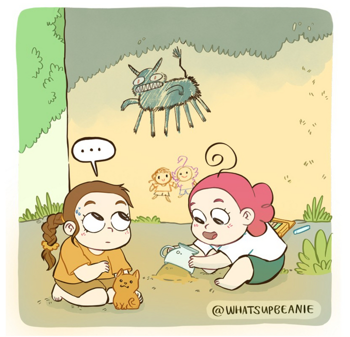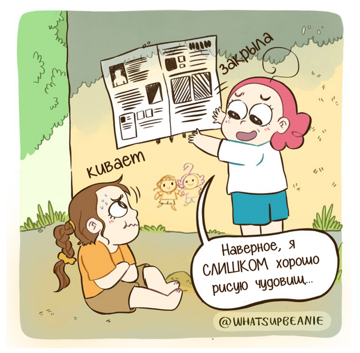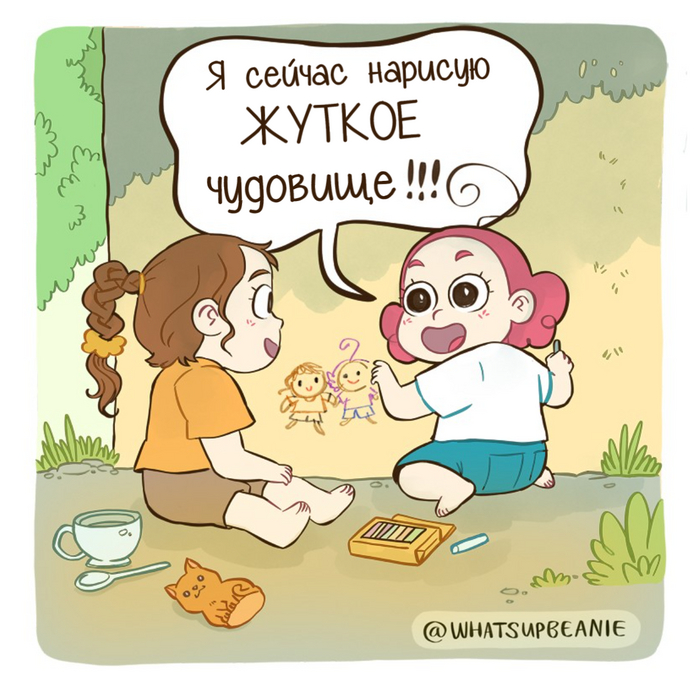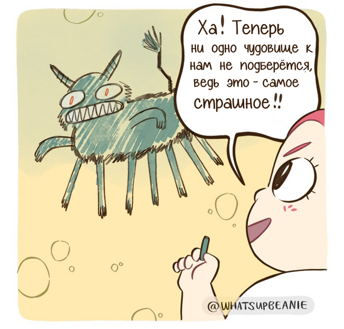 Комментарий автора: Однажды я пыталась нарисовать страшное чудовище и нарисовала его таким, что сама испугалась. И это был не первый случай, ха-ха-ха.