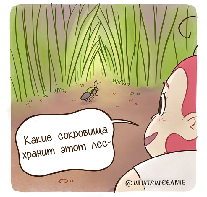 Комментарий автора: В детстве мне нравилось лежать на траве и представлять, будто я смотрю на мир с высоты букашки. Однажды моя мама действительно об меня споткнулась, ха-ха.
