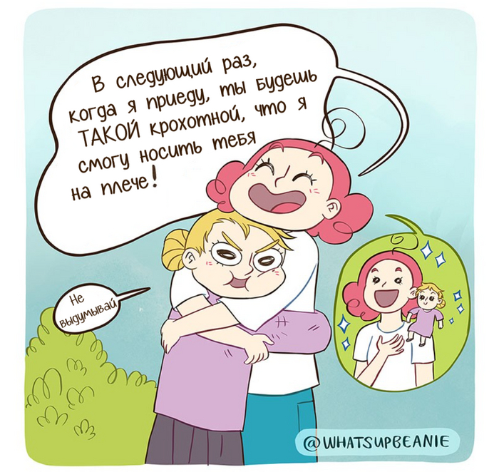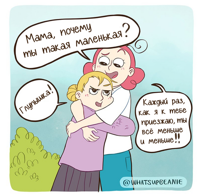 Комментарий автора: Каждый раз, когда я вижу свою маму, клянусь, она становится все меньше и меньше. А ваши родители выше или ниже вас?