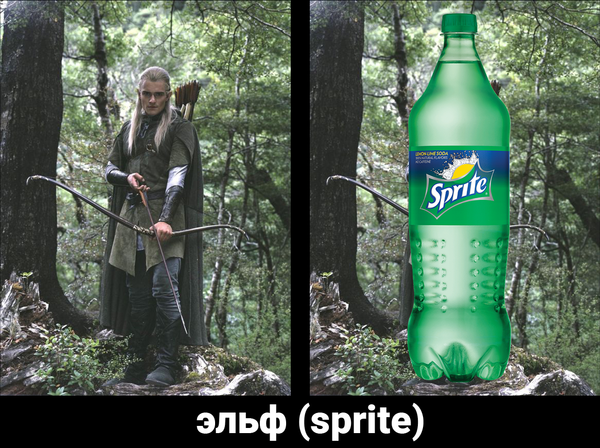 Sprite - самый распространенный перевод это эльф! Вот это дела! Мне вот интересно, что чувствует американец, когда покупает этот напиток?