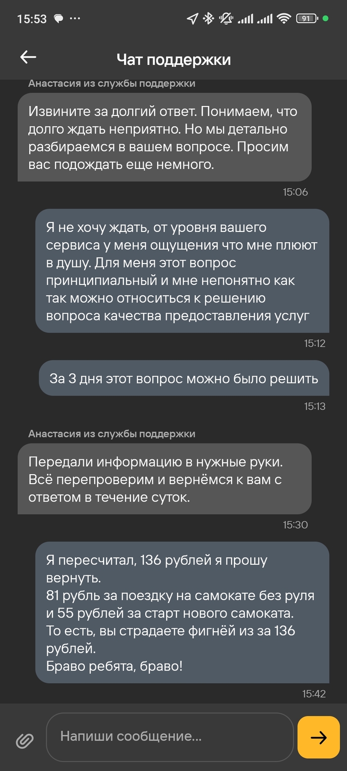Не думаю, что мое мнение повлияет на отношение лояльных клиентов аренды самокатов, но вдруг... Плюс еще маленькая капля для самих компаний, если они вдруг озабочены сбором мнений о своей работе.