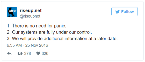 С почтовым сервисом для активистов RiseUp что-то случилось, но он не скомпрометирован