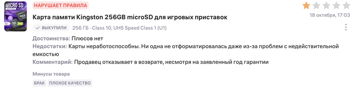 Вот такая вот история. Возможно, для кого-то уже и не новая. Я пребывал в святой наивности, полагая, что уж площадка-то меня от всяких мошенников защитит всегда. Видимо, бывают случаи, когда площадка больше заинтересована в продавце неработающего товара, чем в покупателе. Боюсь, что случаев таких очень много, ведь никак не проверить обратного, если реальные негативные отзывы не публикуют...