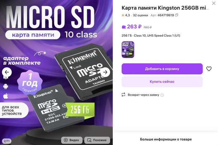 Покупаю я тут на там, где нельзя говорить, карточки памяти. Вот эти: