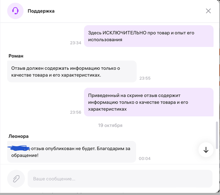 Парампампам! Нарушает правила!!! И фееричный ответ "непредвзятой поддержки маркетплейса":