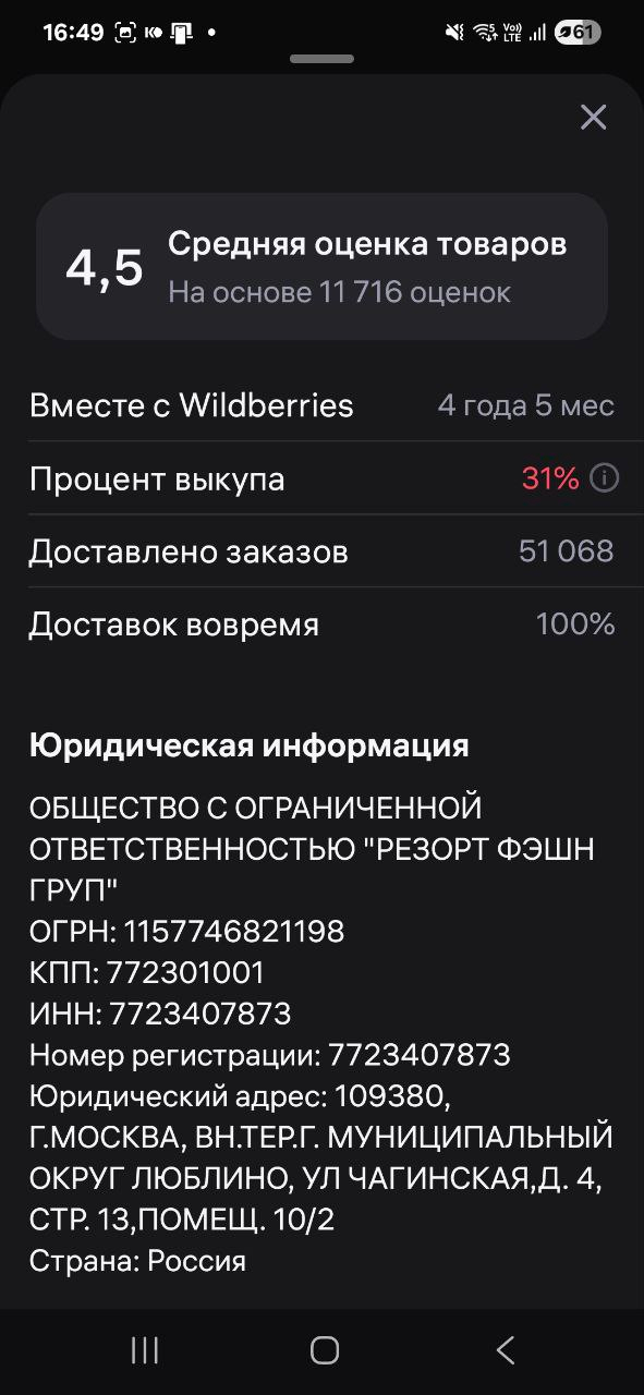 Опа! Доля выкупа составляет всего 31%. Как то маловато для продавца, торгующего качественной одеждой, не правда ли?