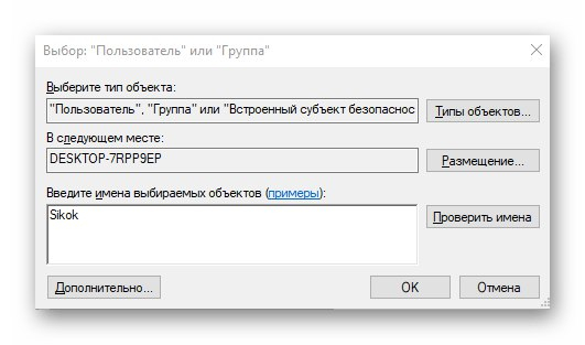 Вводим имя пользователя или группы и нажимаем «Ок».