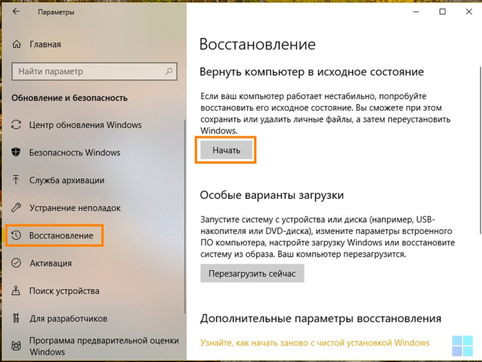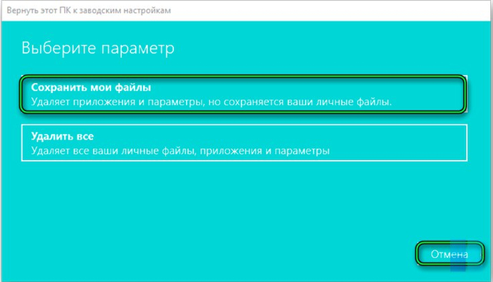 Здесь выбираем «Начать» и следуем дальнейшей инструкции. Вариант восстановления с сохранением пользовательских файлов не затронет личные данные. Будет произведено удаление всех сторонних программ и приложений, которые были установлены за весь период работы.