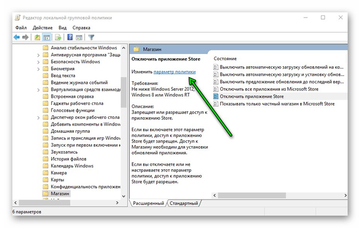 Дважды кликаем по разделу «Магазин» и выбираем «Отключить приложение Store».
