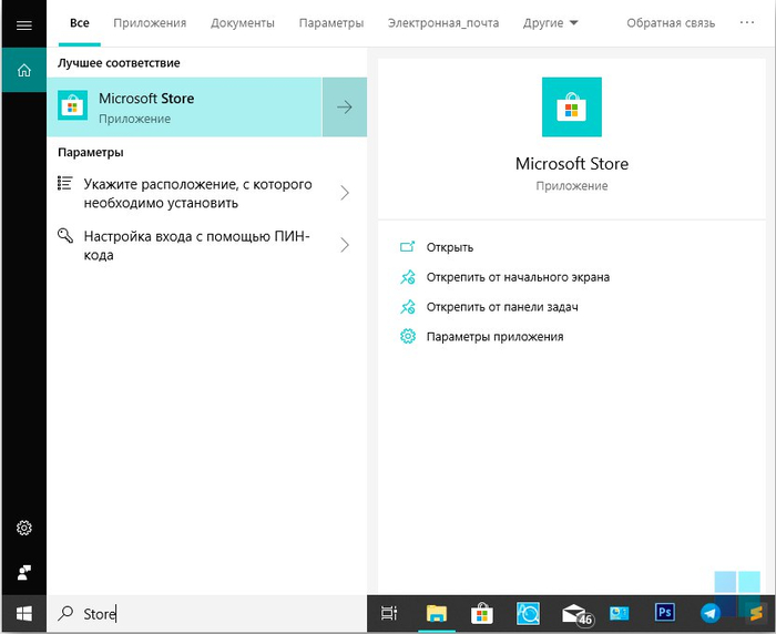 Дожидаемся завершения операции и пробуем найти Microsoft Store через поиск Windows