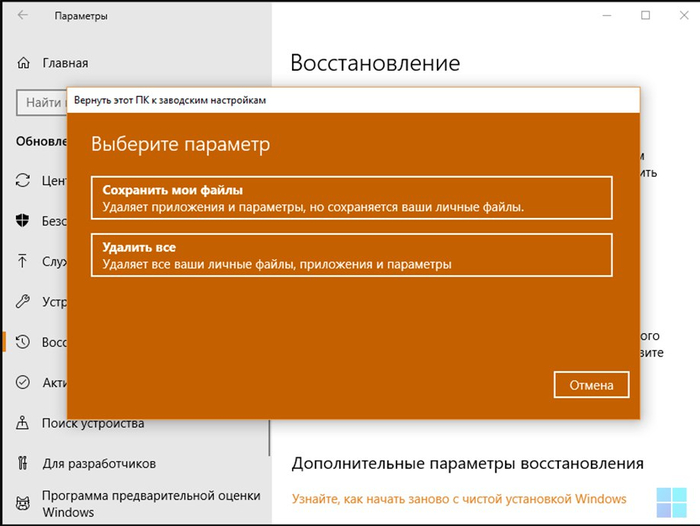 Параметр «Удалить все» вернет Windows 10 к первоначальному состоянию. Он чем-то похож на полную переустановку системы. Только для этого не нужен загрузочный диск с образом Windows. Личные данные и программы будут удалены.