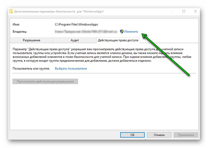 Для дальнейших действий нам нужны права владельца ПК, чтобы иметь возможность вносить изменения в каталог WindowsApps.