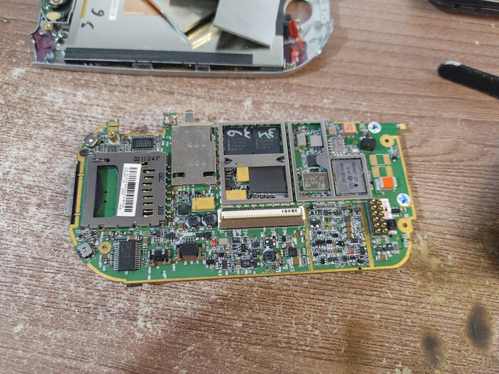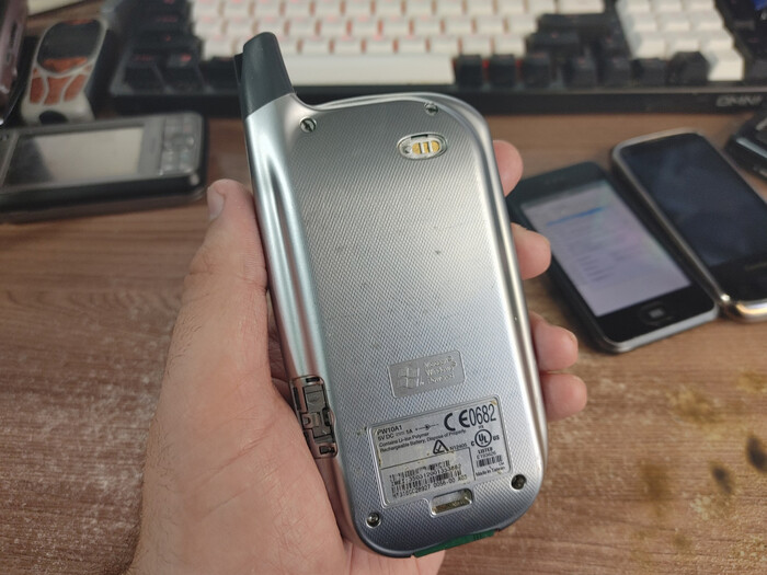И один из таких аппаратов попал в мою коллекцию благодаря подписчице с «Пикабу» — @Christo, которая подарила мне коробку со старенькими коммуникаторами своего отца. Несмотря на почтенный возраст, смартфон смотрелся достойно... но вот нюанс: у него был неизвестный проприетарный разъём для зарядки и синхронизации, а также вспухший аккумулятор, который не хотел принимать в себя заряд.