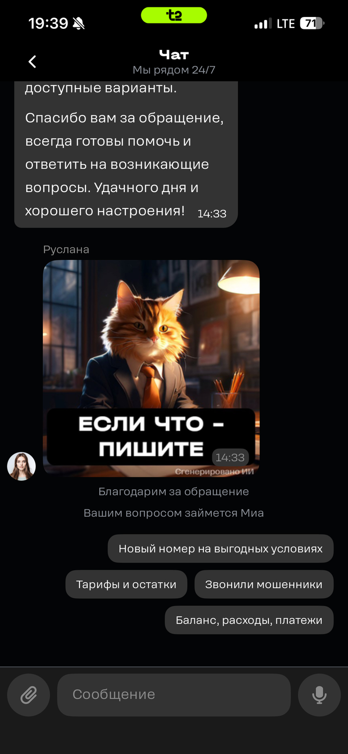 Но, видимо, моя проблема оказалась слишком трудной, что бы решить её за 4 дня. Но и это мне не сообщили, предпочли забить и совсем ничего не отвечать. Но мы не гордые, позвонили сами. Оператор уведомил меня, что задача, которую я им поставил невероятно трудная. Сегодня все решим и Вам сообщим. Но как и следовало ожидать, никто не звонил, не писал в течении дня. На следующий день снова решил им позвонить, ответили абсолютно тоже самое и что в течении дня точно-точно все решим. За день ответа не последовало. Звоню сегодня, и опять тот же ответ: "Мы Вас понимаем, извините, все решим"(Если бы Вы знали как нам похуй, Вы бы расплакались)