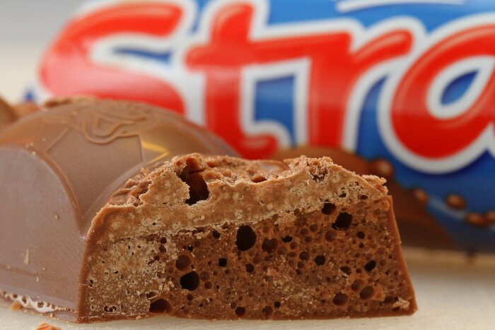 Трамвай с рекламой батончика «Wispa». Россия, 1990-е годы.