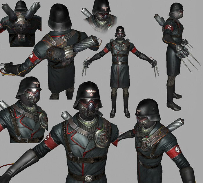 В 2009 году неожиданно, без всякой яркой рекламной кампании, свет увидел Wolfenstein, который мне понравился ощутимо меньше. Но со временем в сети я начал находить арты и прочие материалы для разработки игры. Спешу поделиться с вами тем, что обнаружил. Возможно среди вас найдётся фанат, которому это покажется интересным.