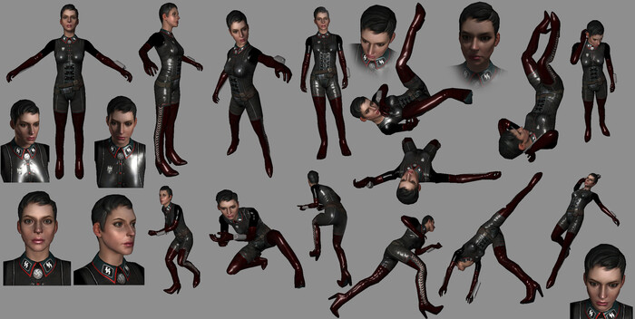 Как видите в сэтах анимации элитных гвардеек, они как и раньше должны были пользоваться ПП Стэн или МР34, а не сокращать дистанцию с игроком для нанесения удара. При этом энергетический хлыст и различные атаки в рукопашную тоже никуда не делись.