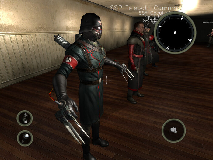 Пример теневого убийцы, который вместо фантастических клинков из энергии тени, имеет когти как у Фрэдди Крюгера. Вариант худа более ранний. Присутствуют фонарик, американские гранаты.