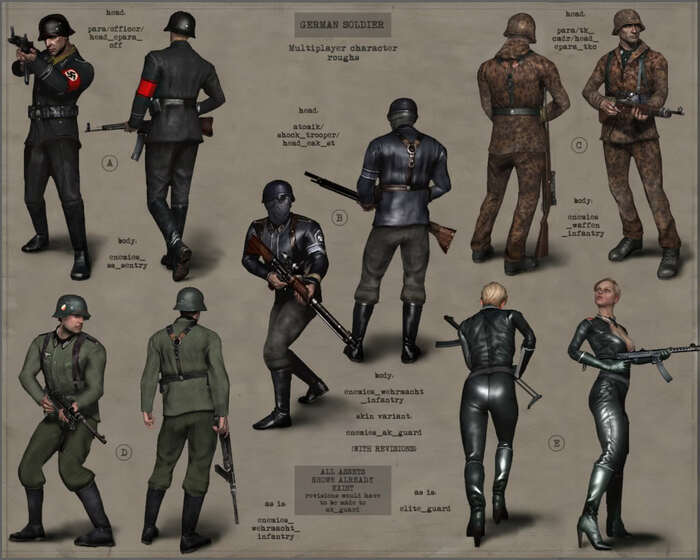 Больше вы можете увидеть у него в профиле, ссылка на него выше по тексту. Как вы понимаете, иногда то отличие, которое есть между артами и финальной игрой, не вынужденно вырезанный контент, а намеренно отвергнутая линия развития проекта. Возможно в какой-то момент разработки, Raven захотели уйти от тематики реалистичного представления Второй мировой войны в сеттинге альтернативной истории. Ассоциативная связь с Call of Duty их скорее всего не сильно радовала, и точно так-же, как одиночная компания Wolfenstein: Enemy Territory пошла под нож, так и явная связь с Return to Castle Wolfenstein, были отвергнуты в пользу новой подачи и получилось то, что получилось.