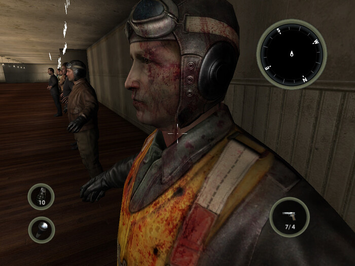 Сбитый самолёт в меню игры судя по всему должен был быть игровой локацией, в которой мы бы столкнулись с мёртвым пилотом. Согласно сюжету Return to Castle Wolfenstein, Блажкович часто передвигался между миссиями воздушным путём, как подобает американскому десантнику. Как выясняется, в этот раз, ему не повезло незаметно спуститься на парашюте и бесшумно начать выполнять свою миссию.