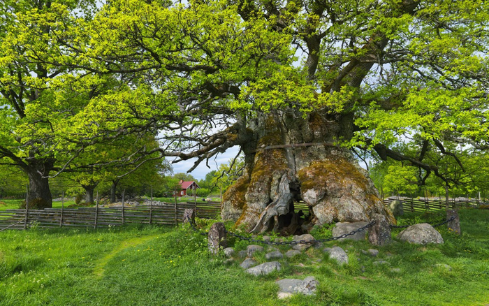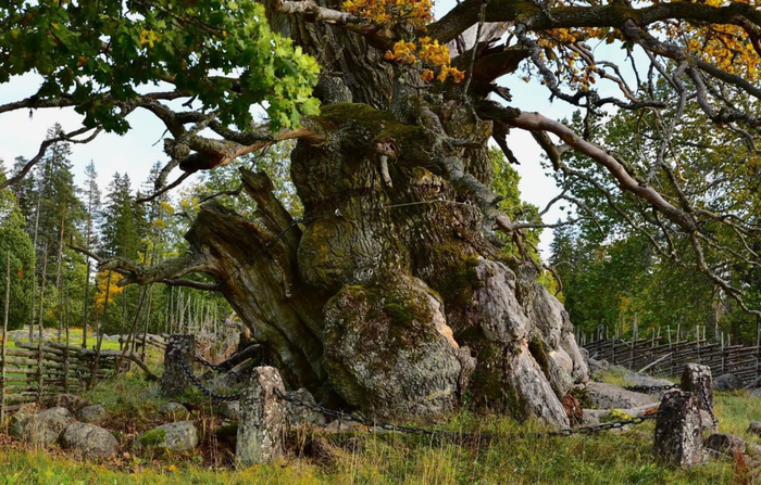 В шведской провинции Смоланд стоит дерево, которое застало крестовые походы. Дуб Румскулла пророс из жёлудя примерно в 1000 году нашей эры — в эпоху, когда население всей Швеции составляло 400 тысяч человек, а первый король-христианин Олоф Скётконунг только начинал крестить страну. За тысячу лет существования этот дуб стал самым толстым деревом Европы: окружность ствола достигает 14 метров. Для сравнения — обычный столетний дуб имеет обхват 3-4 метра.