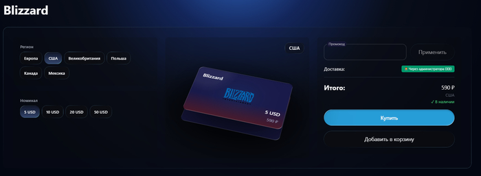Подберите Blizzard gift card под ваш регион на Code-Top.shop, оплатите в рублях.
